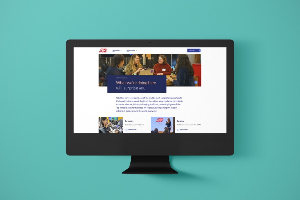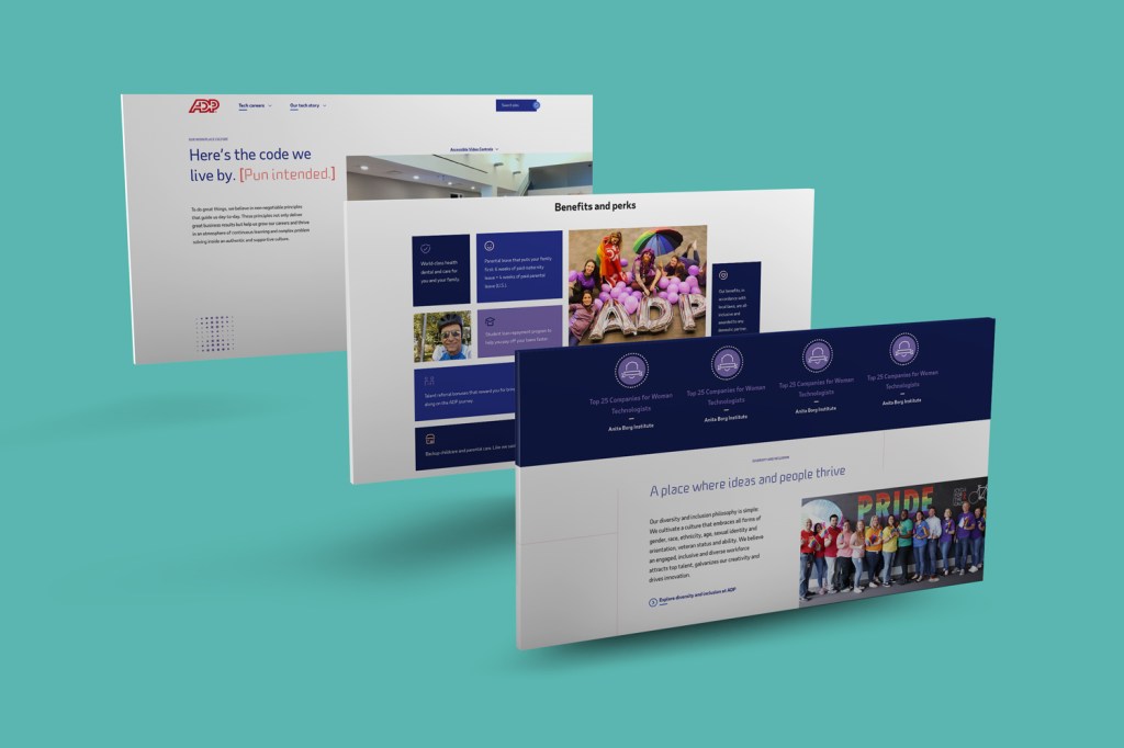 Goal: Using ADP’s existing EVP framework and employer brand standards, develop an identity specific to Tech talent attraction and bring it to life as a careers website experience at tech.adp.com.