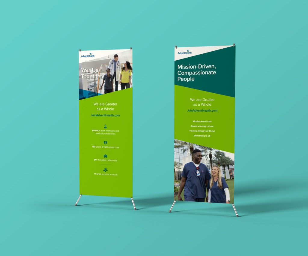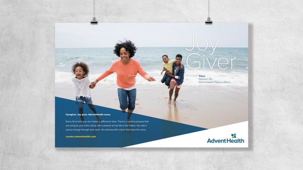 Goal: Using AdventHealth’s new consumer brand, conceptualize and execute an Employer Brand that achieves 3 primary objectives: Attracts talent across all roles that shares the organization’s values and theologies, unifies disparate and newly-acquired hospitals under a singular identity, and engages & excites all existing AdventHealth associates.